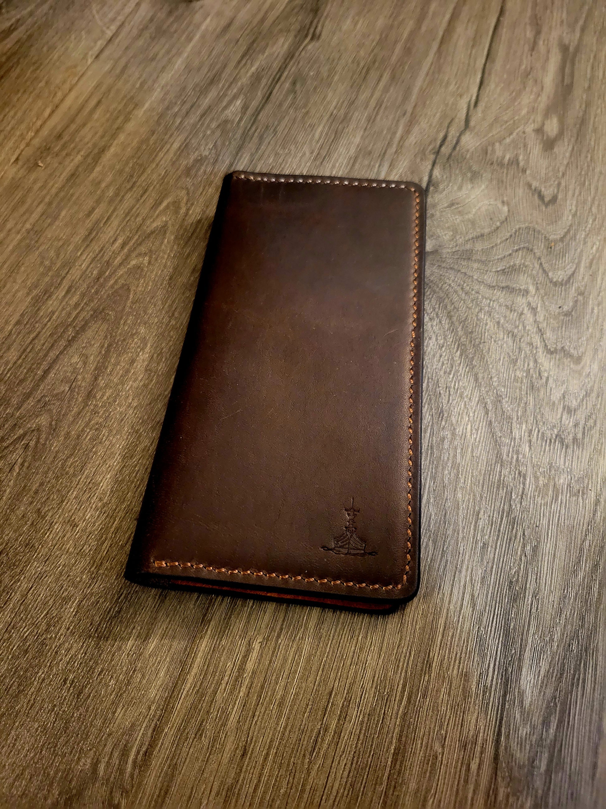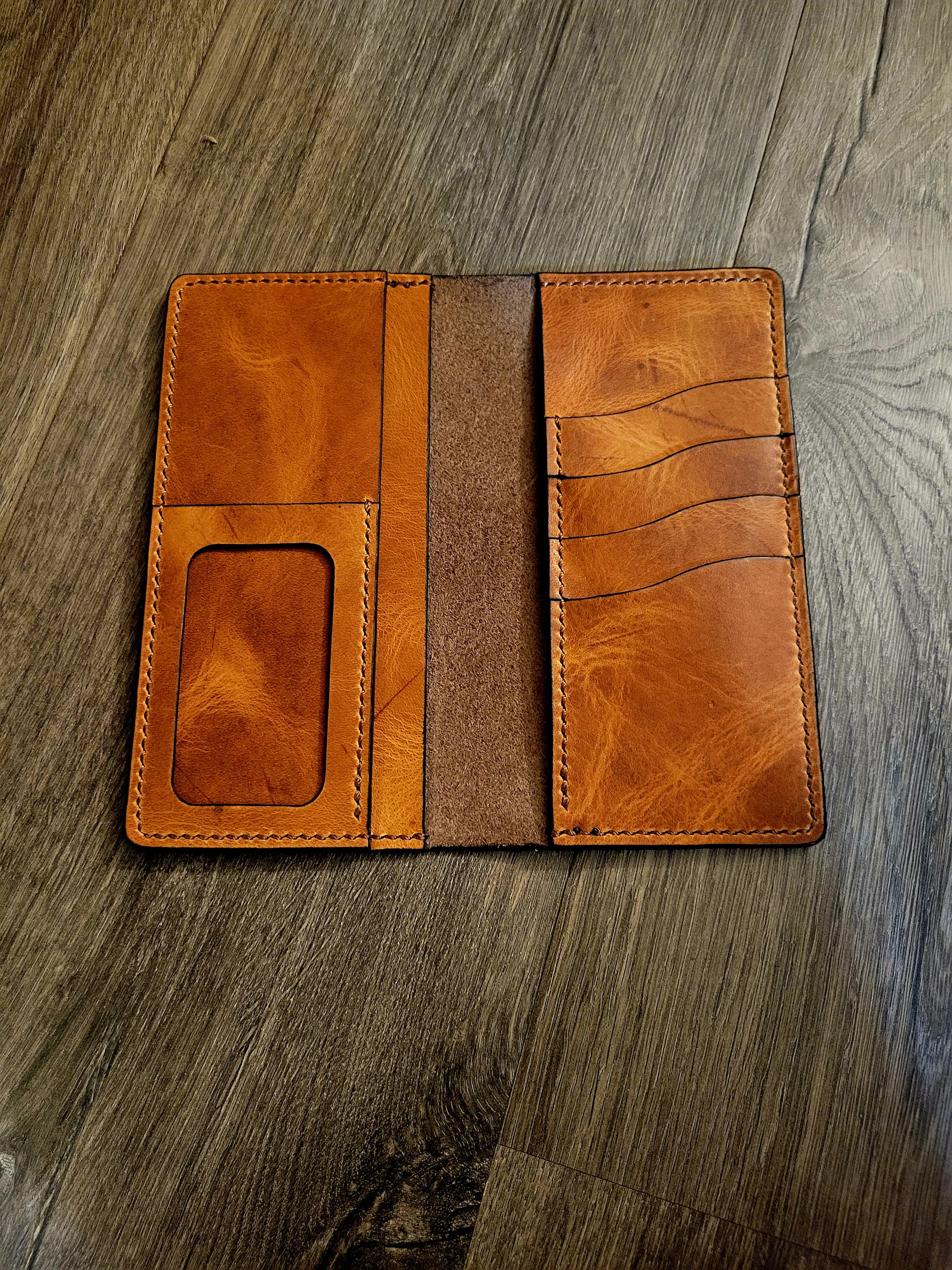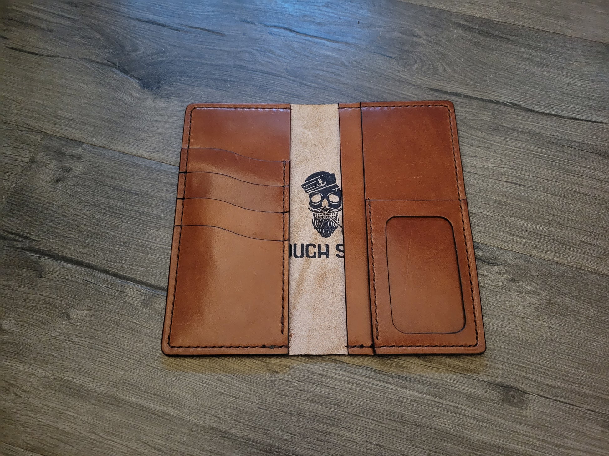 The Wallet is made slim and can hold a quite a lot 8 cards, one ID pocket one cash pocket and two other pockets for whatever you would like them for. Made from only premium leather, all orders are made to order.